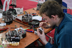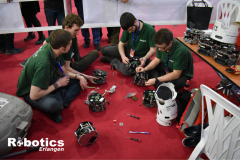 Die Akkus werden schnell getauscht und danach prüfen wir die Bots, ob sie auch alle auf unser Kommando hören und fahren können.