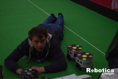 16′: Es fahren immer weniger Roboter richtig. Wir nehmen ein Timeout. Im Moment funktionieren nur fünf Roboter. Teilweise haben die Roboter auf einmal keinen Funk mehr.