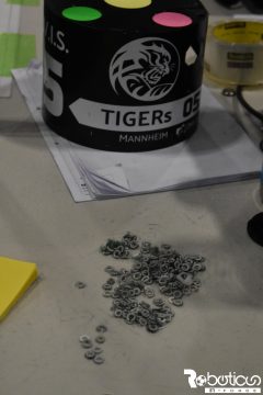 Unser zweites Spiel war gegen TIGERs Mannheim. Wir erwarteten knapp zu verlieren. Die Roboter aus Mannheim sind unserer alten Generation technisch stark überlegen, doch ihre kleinen Räder wurden leider durch die hohen Linien beschädigt. Sie lösten sich teilweise auf dem Spielfeld in ihre Einzelteile auf. Dies bescherte uns einen gewissen Vorteil und dank der Robustheit unserer Roboter konnten wir ein 2:0 erspielen.