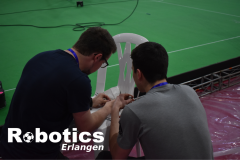 In der Halle wurde währenddessen an der Strategie weitergeschrieben, alle Roboter gecheckt und so gut es eben ging repariert.
