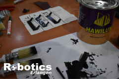 Mit dem Taxi ging es zu mehreren kleinen Straßenläden, in denen wir nach etwas rumfragen Sprühlack und schwarze Farbe kaufen konnten. Nach der Rückfahrt haben wir testweise drei Hochschussklappen bemalt und trocknen lassen.