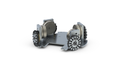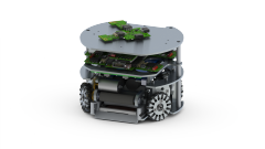 Der Roboter wird von vier 30-Watt-Maxon EC-Flachmotoren angetrieben. Ein Getriebe überträgt das Drehmoment auf die Räder. Die Räder unterscheiden sich von denen, die wir aus dem Alltag kennen: Da entlang des Umfangs sogenannte Subräder angebracht sind, kann sich das Rad auch in seiner axialen Richtung bewegen und wird daher als omnidirektionales Rad bezeichnet. Jedes omnidirektionale Rad hat 15 Unterräder, die auf einzelnen Achsen in Nuten im Hauptteil des Rades angebracht sind. Dieses Antriebssystem ermöglicht es dem Roboter, sich in eine beliebige Richtung zu bewegen und sich gleichzeitig um seinen Mittelpunkt zu drehen.