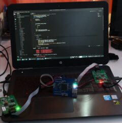Die Firmware ist leider sehr mühselig über die Entfernung zu entwickeln. Wir haben zwar an einem Ort einen Testaufbau, wie im Bild zu sehen ist, aber unser Netzteil und das Oszilloskop vermissen wir schon. Dennoch kein Grund um Trübsal zu blasen. Soweit wir keine allzu aufwändige Tests benötigen wird trotzdem weitergemacht.