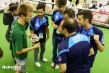 4′: Die Armada stand bereit, aber der freistehende Roboter kam nicht schnell genug zum Schuiss. Jetzt hat MRL ein Timeout genommen, dann dürfen wir auch an den PC. Dadurch konnten wir uns nun ein Timeout sparen, denn gerade haben wir unsere Schusspräzision zugunsten der Schnelligkeit verringert.